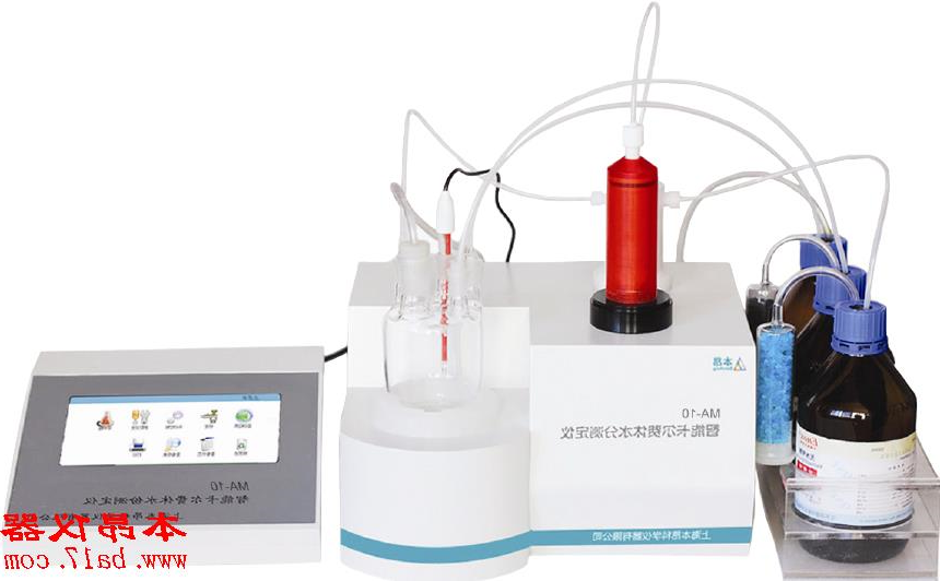 MA-10智能卡尔费休水分测定仪为上海本昂科学仪器有限公司研发部和中国兵器工业集团第五三研究所共同研发的全自动水分分析系统,采用带触摸屏的超大屏幕LCD液晶显示器,具有软件内容丰富,操作内容汉字提示,人机对话灵活方便,试验结果存储和打印等功能。在2010年又和清华大学精密测试技术及仪器国家重点实验室合作,用超精密位移测量技术对其做了进一步的改进,测量精度有了质的飞跃。